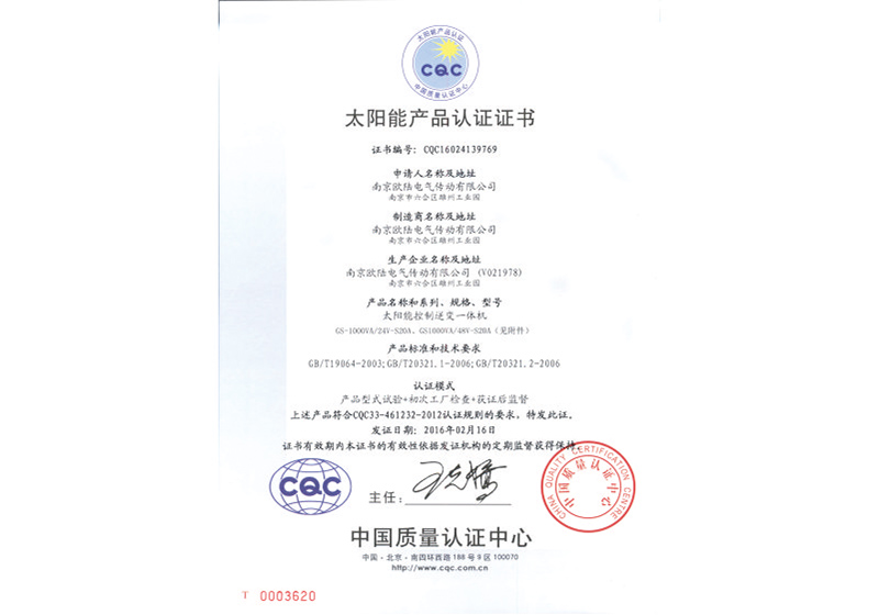 2、系列產品通過ISO9001:2008國際質量體系認證、歐盟的CE認證、CQC檢測認證、CGC檢測認證、TUV檢測認證及國內權威機構的檢測。